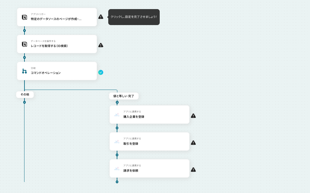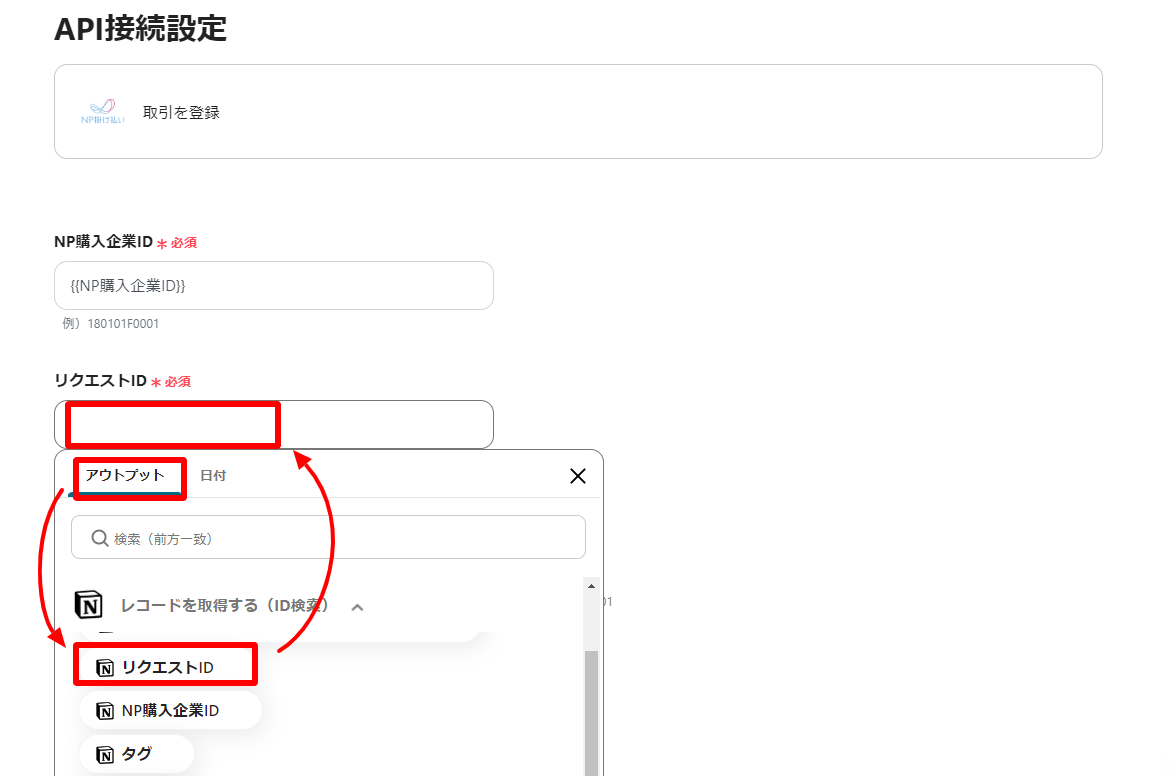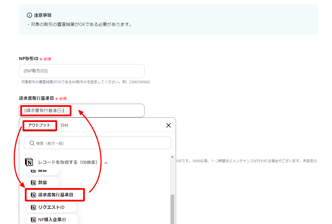 今回のフローは「Notionでステータスが更新されたらNP掛け払いで請求を依頼する」というものです。