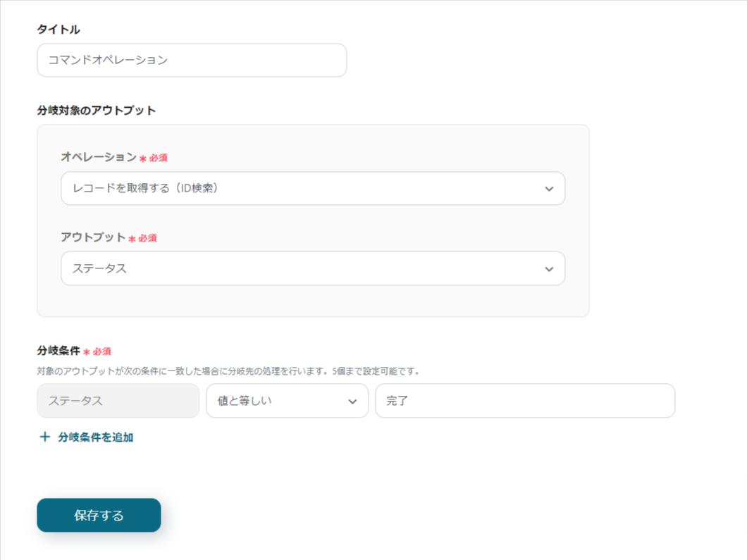 ここまで確認出来たら「保存する」でレコード取得の設定は完了です。