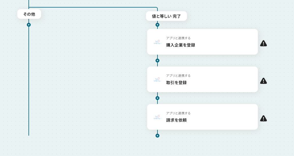 ・分岐はミニプラン以上のプランでご利用いただける機能(オペレーション)となっております。フリープランの場合は設定しているフローボットのオペレーションはエラーとなりますので、ご注意ください。