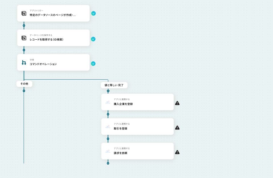 特に取引金融が多い企業や、繁忙期であっても、Notionでステータスが「完了」になると自動で請求が進むため、タイミングを逃さず確実に請求できるでしょう。そのため、担当者は安心して業務に専念でき、作業負担が軽減することが期待できます。自動化による効率向上で、全体の業務プロセスがスムーズに進みそうですね。
