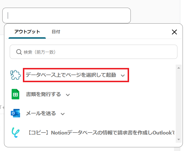 「【コピー】Notionデータベースの情報で請求書を作成しOutlookでメールを送信する」をクリックします。