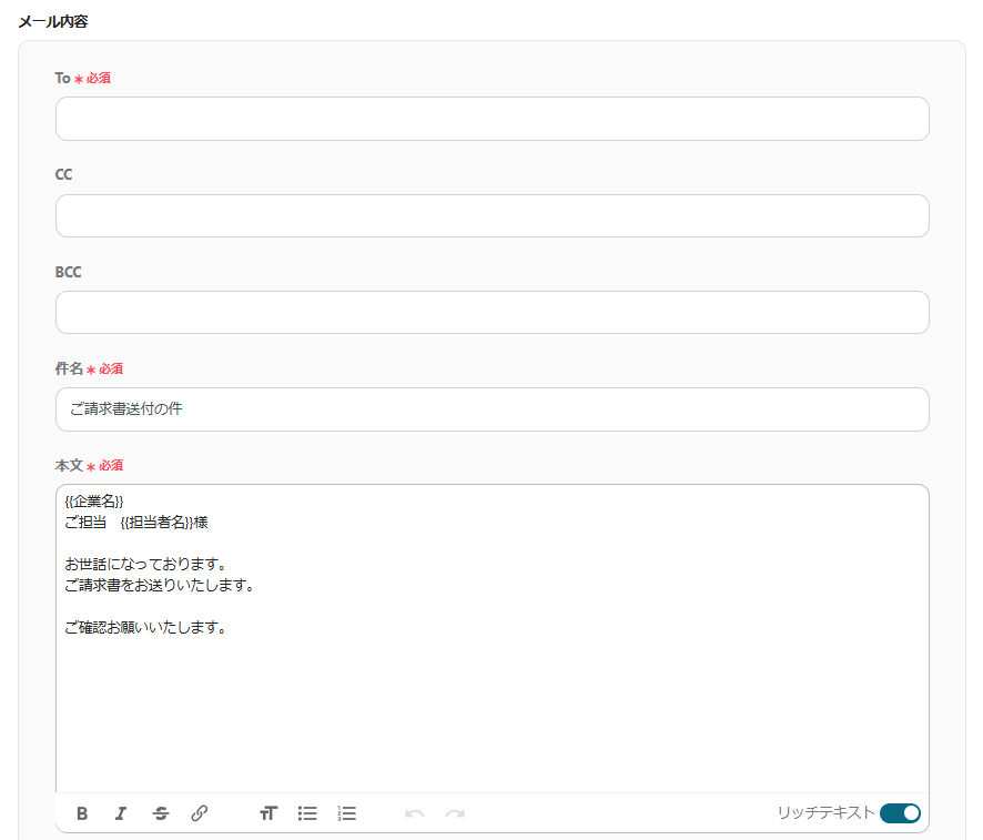 テンプレートを使用しているため、メールの内容設定は完了しています。