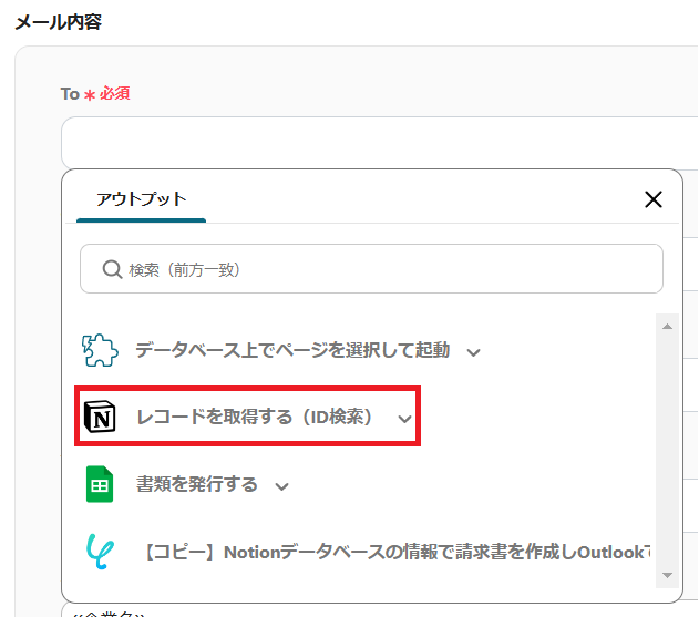 Notionのアイコンの「レコードを取得する(ID検索)」をクリックします。