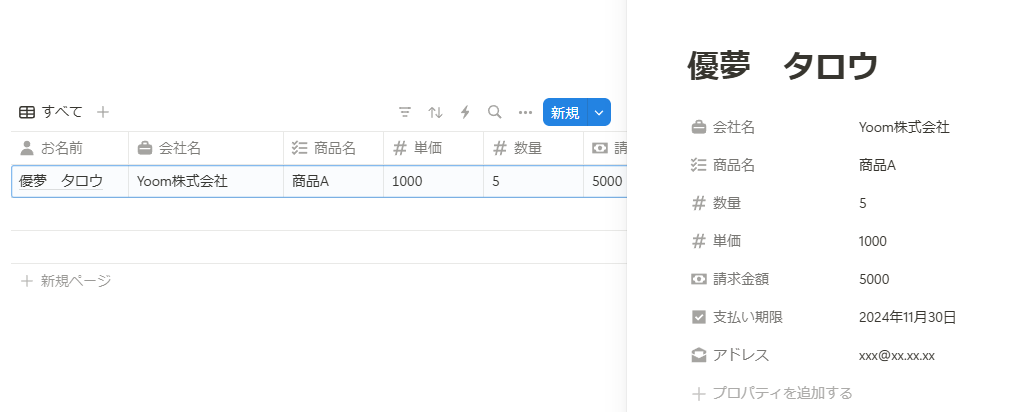 このNotionのページにある「メールアドレス」宛に請求書を送付するため、メールアドレスの項目は作成しましょう。