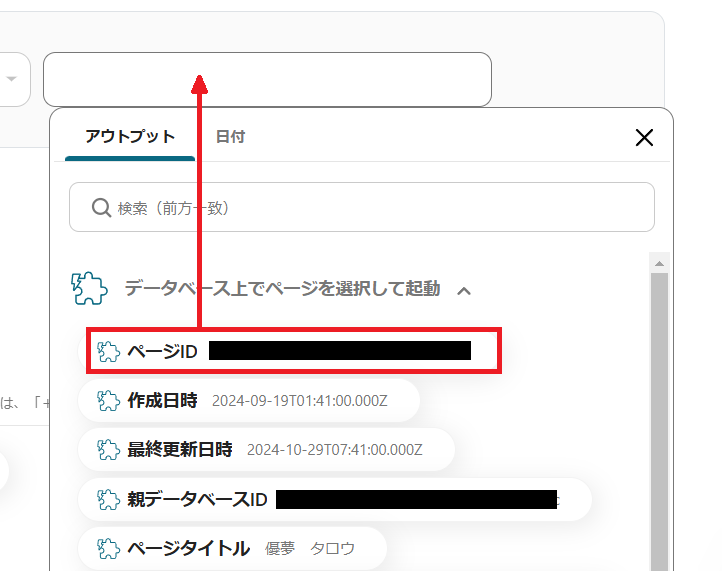 Notionのページデータが表示されます。その中から、「ページID」をクリックしてください。