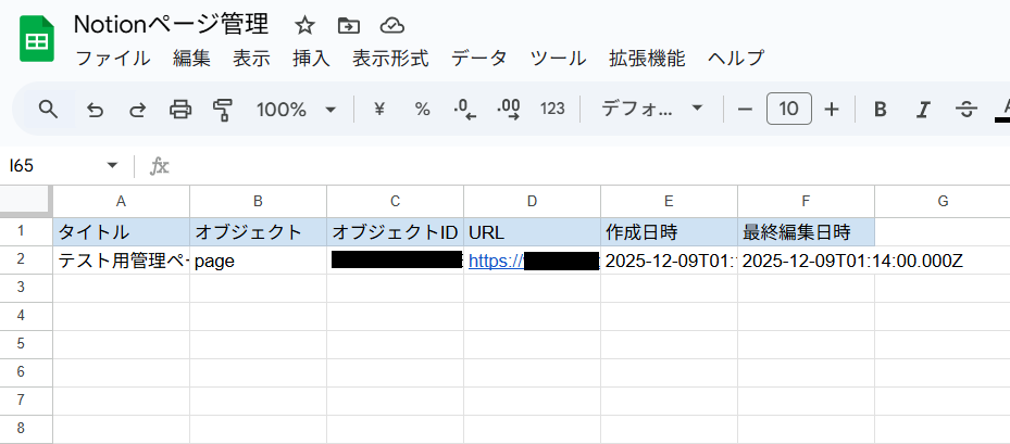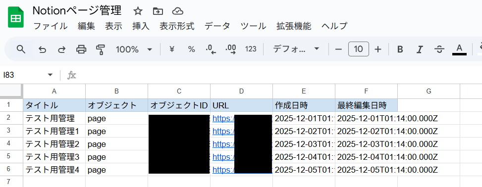 Notionのページリストを取得してGoogle スプレッドシートに記録する