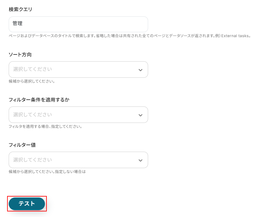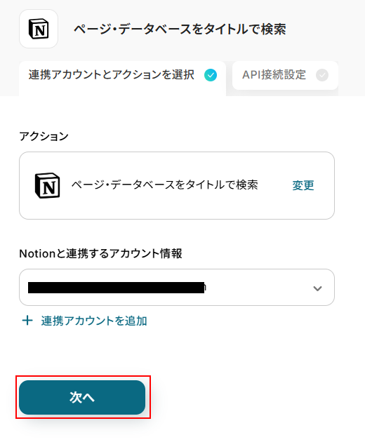 ステップ5:Notionのページ・データベースをタイトルで検索する設定