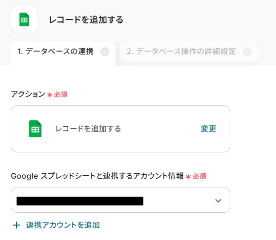 ステップ7:Google スプレッドシートにレコードを追加する設定
