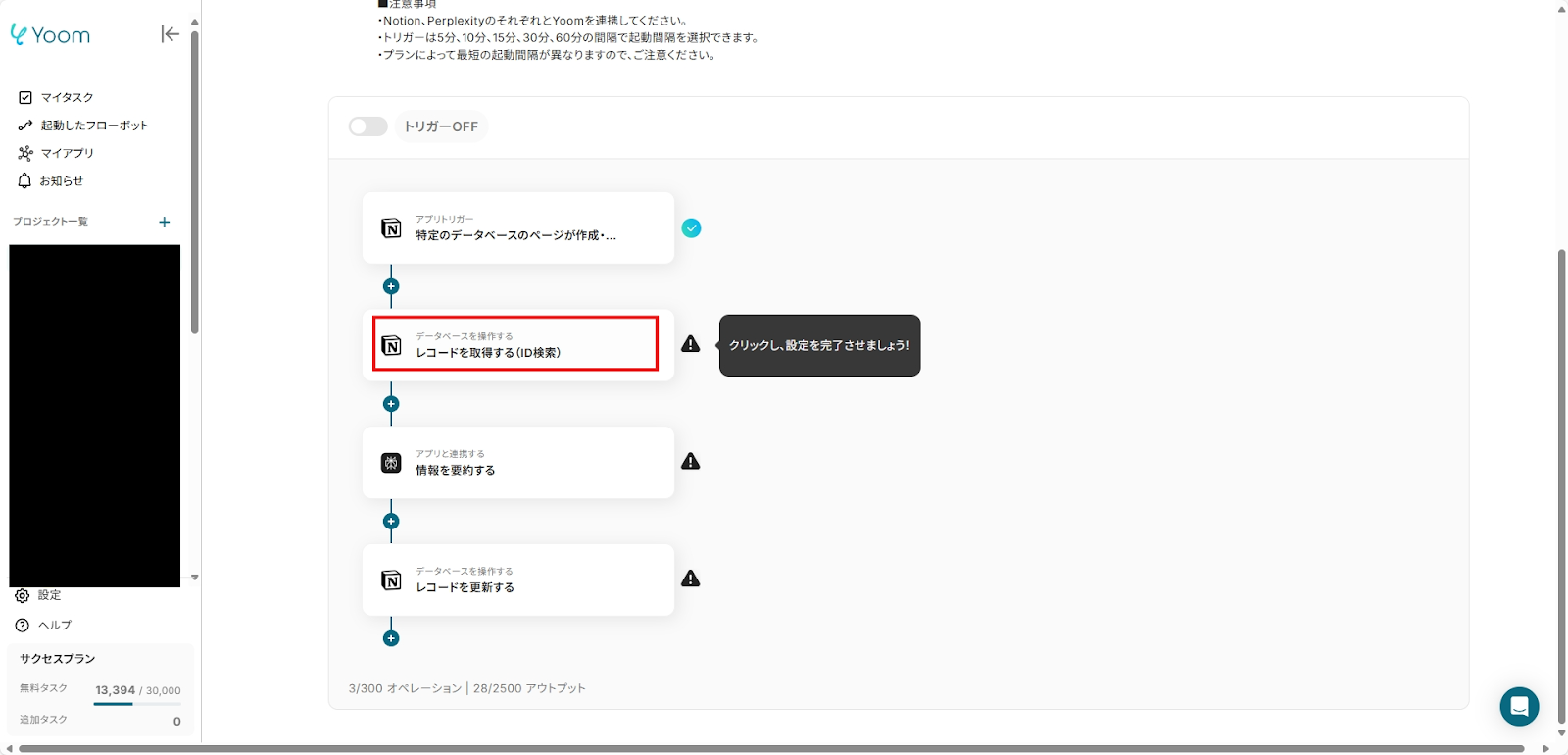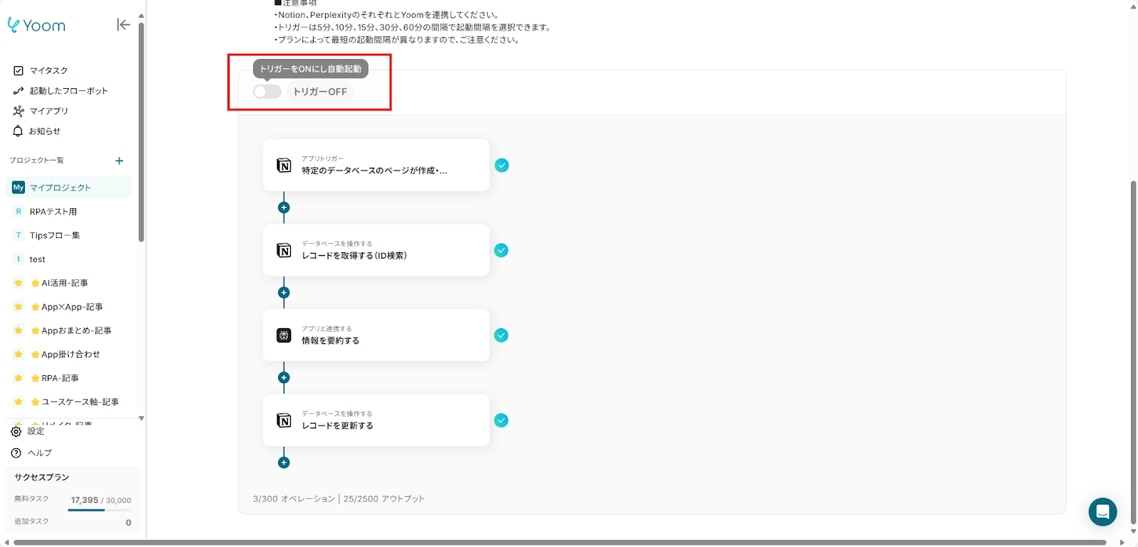 それでは、さっそく実際にNotionとPerplexityを連携したフローを作成してみましょう!