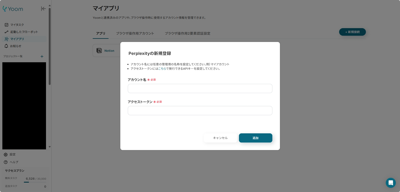 Perplexity、NotionのそれぞれとYoomを連携してください。