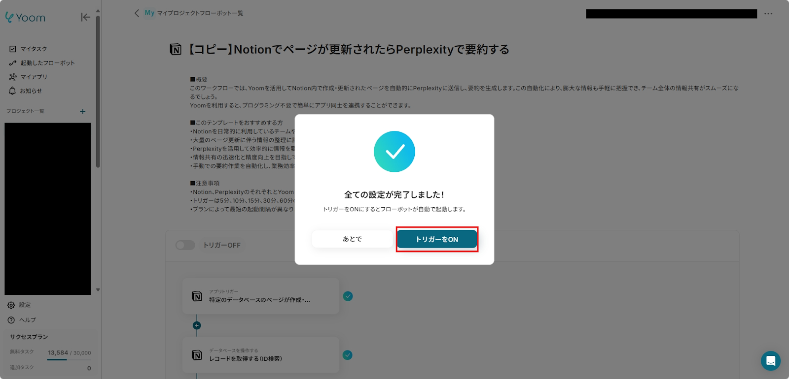 ステップ2:テンプレートのコピー NotionとPerplexityの連携が完了したら、フローの設定に入りましょう。
