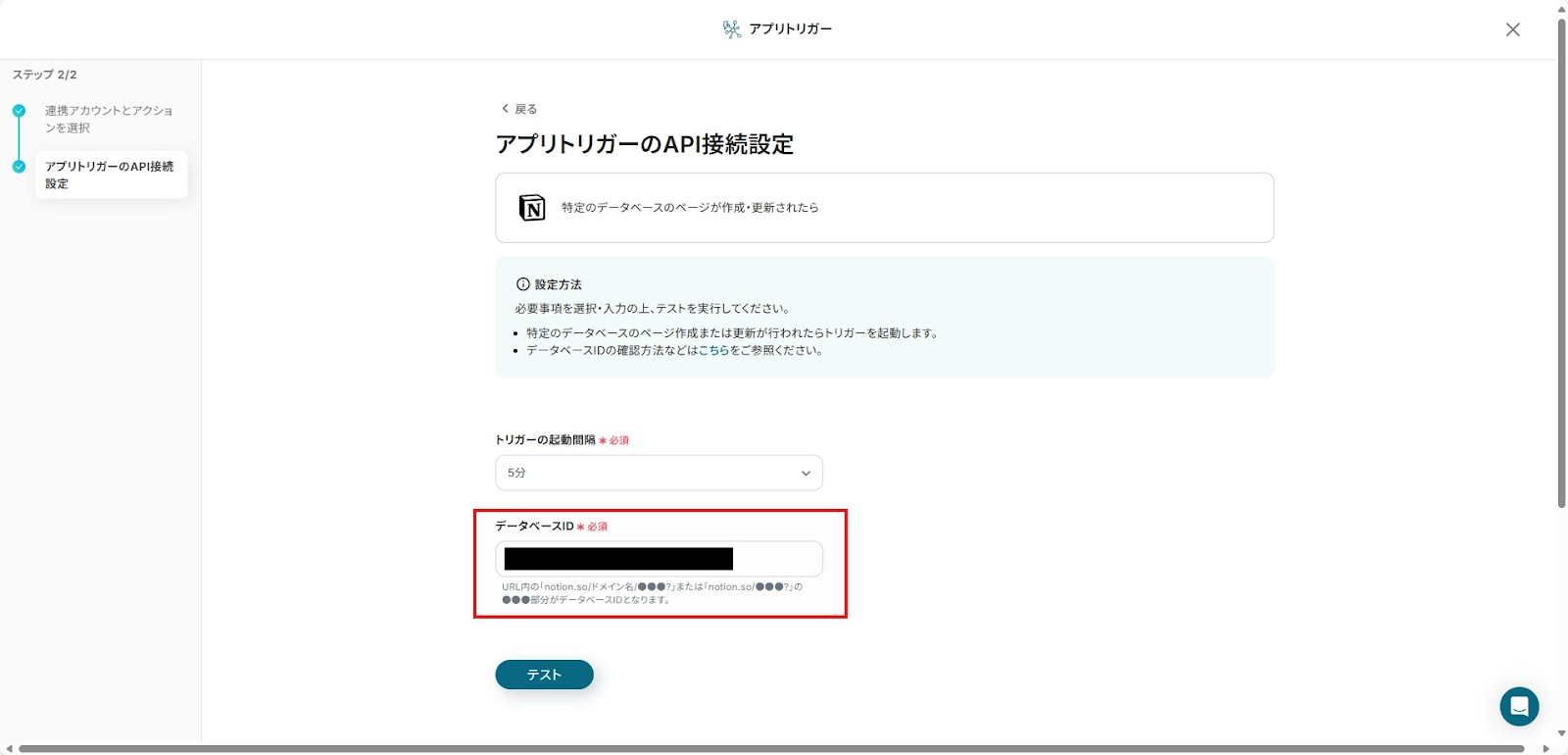 4.「データベースID」を入力欄下の説明に従って入力してください。