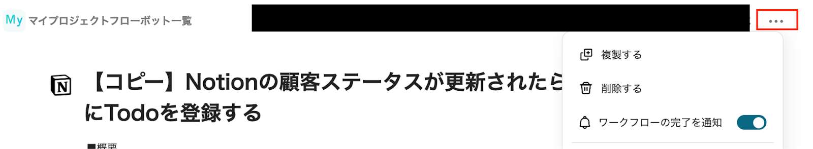 それでは、先ほどコピーしたテンプレートの「特定のデータベースのページが作成・更新されたら」をクリックしましょう。