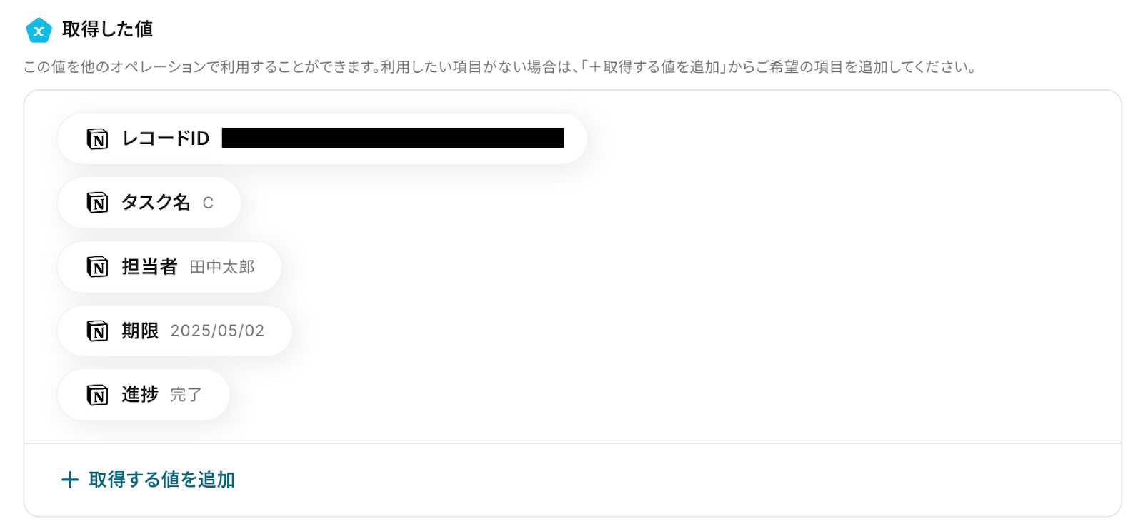 問題なければ、「保存する」を選択し、『取得した値』を確認しましょう。