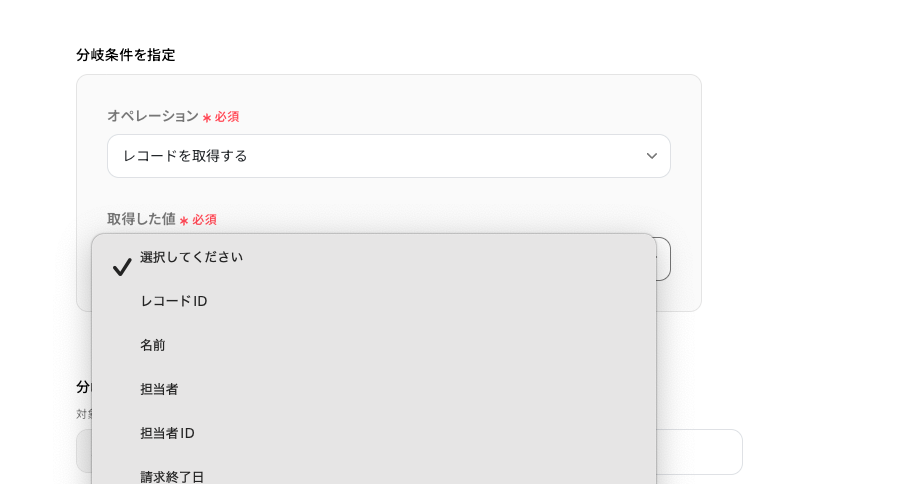 トリガーの設定が完了したら、「レコードを取得する」をクリックします。