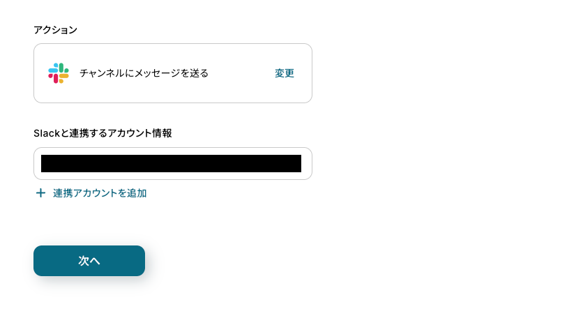 Slackでメッセージを送るアクションでは、通知先のチャンネルを任意のものに設定してください。 通知メッセージの本文は、固定のテキストだけでなく、トリガーで取得したファイル名やURLといった情報を変数として埋め込むことで、動的に作成することが可能です。 ■注意事項