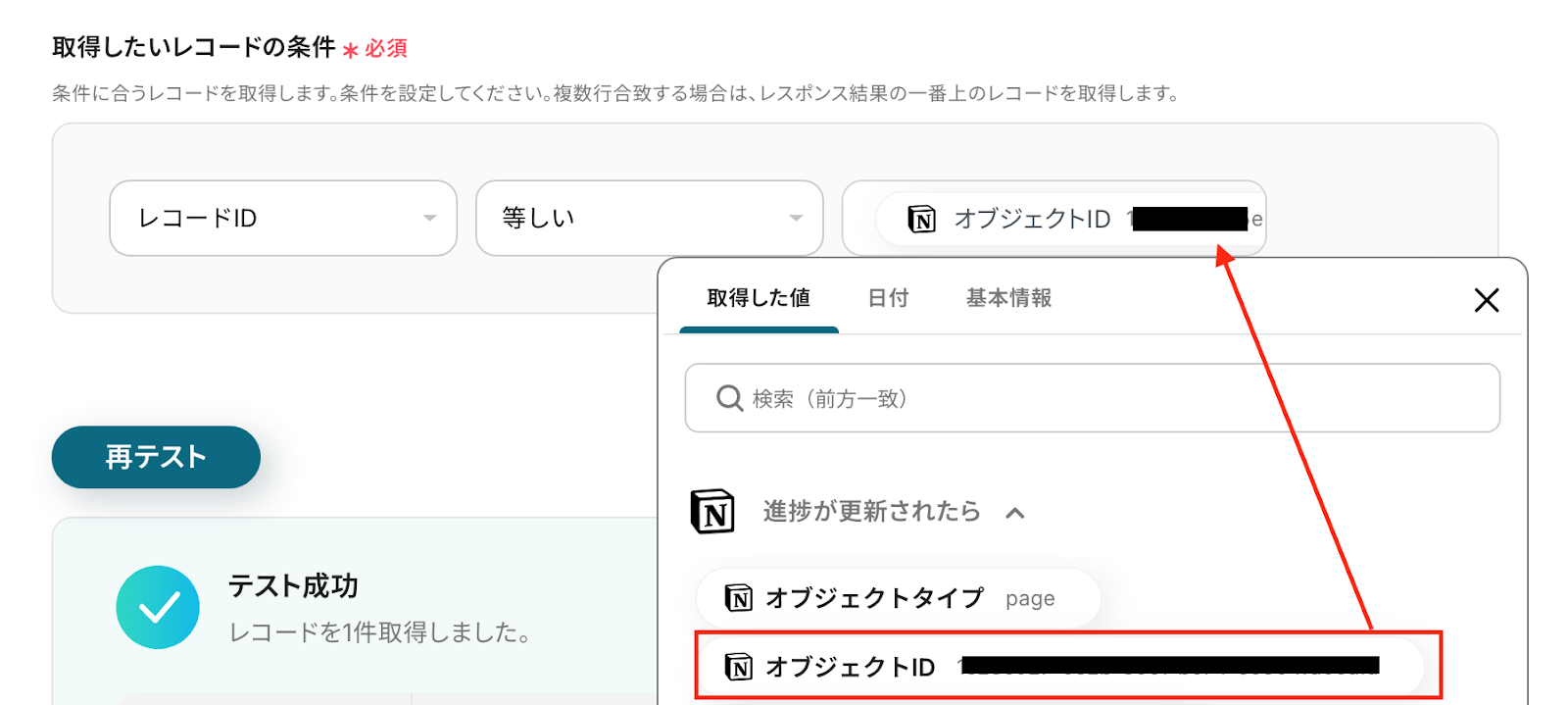 進捗を更新したレコードを取得できたら、次に進みましょう!