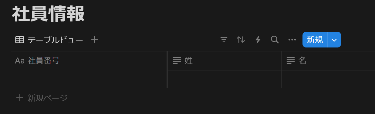ここまで設定したら、Notion画面に移動して、テスト用に社員情報の項目名を設定しましょう。