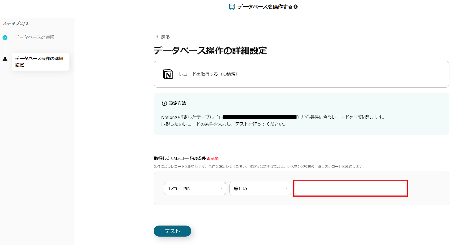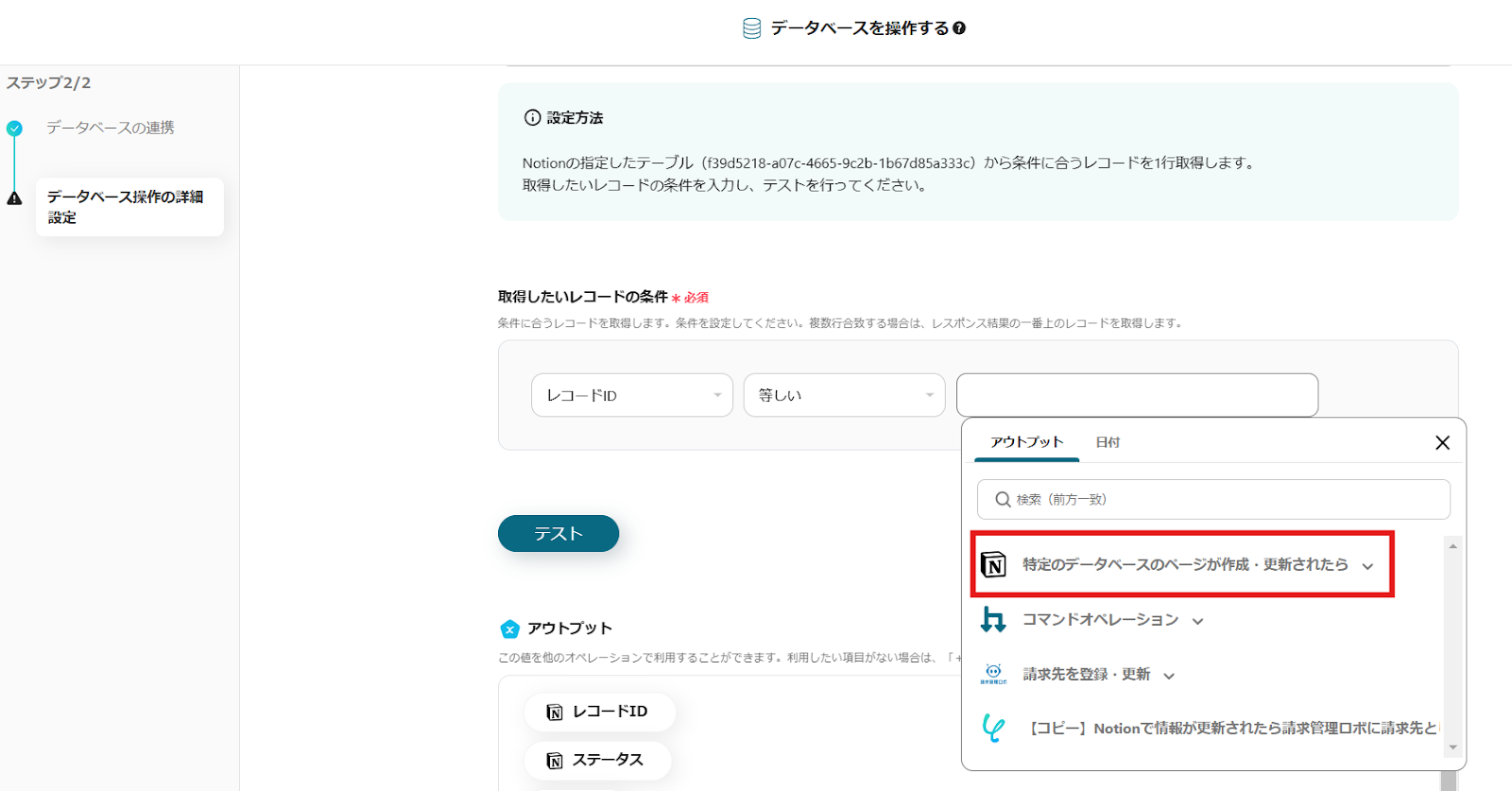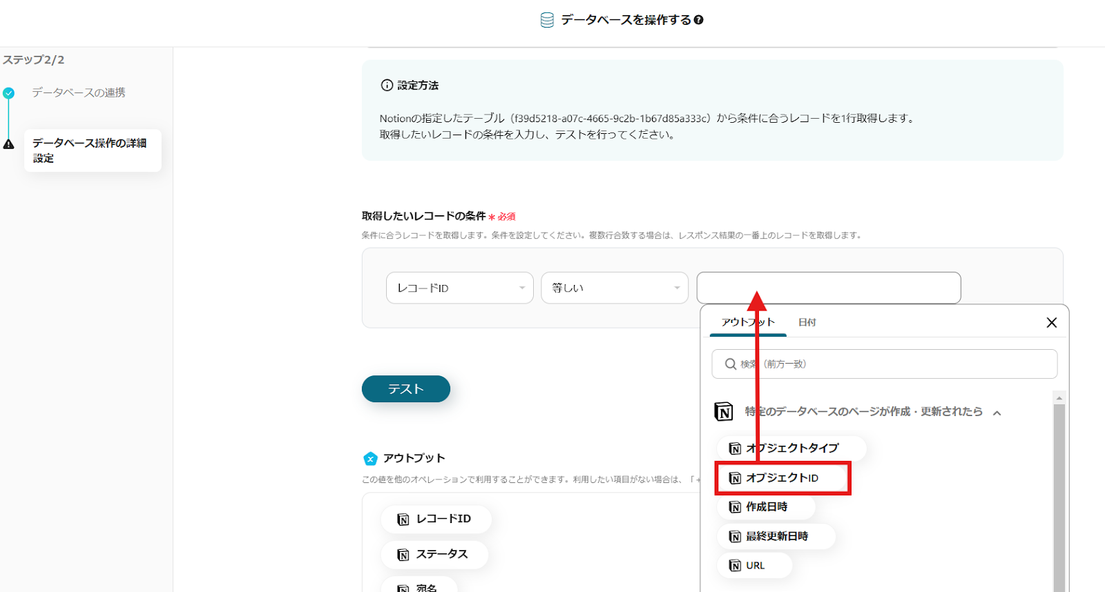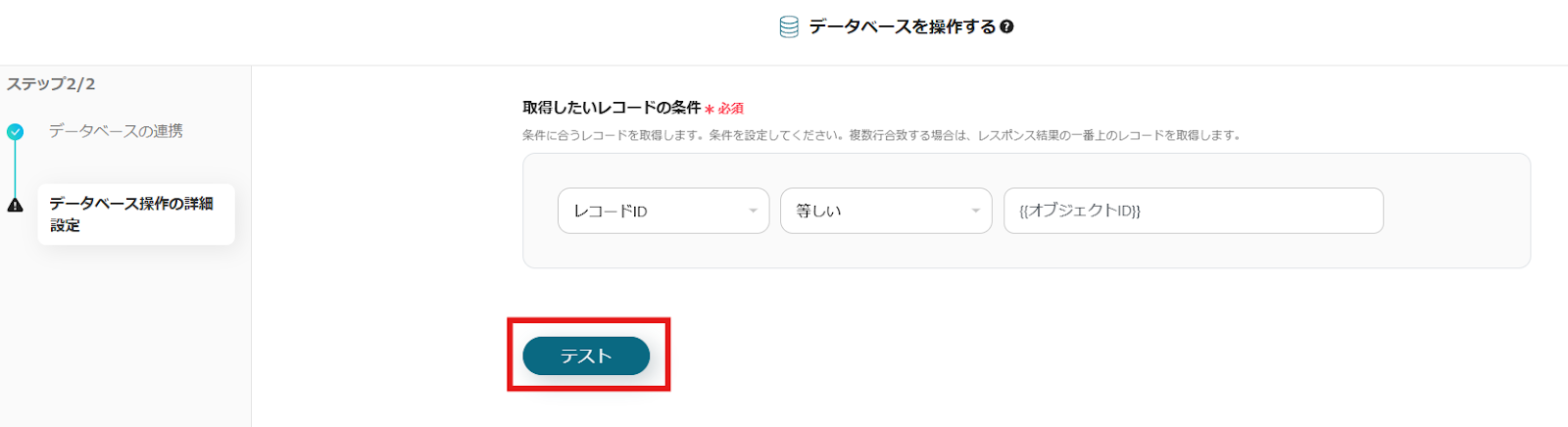 取得したいレコードの条件が設定できたらテストボタンを押します。