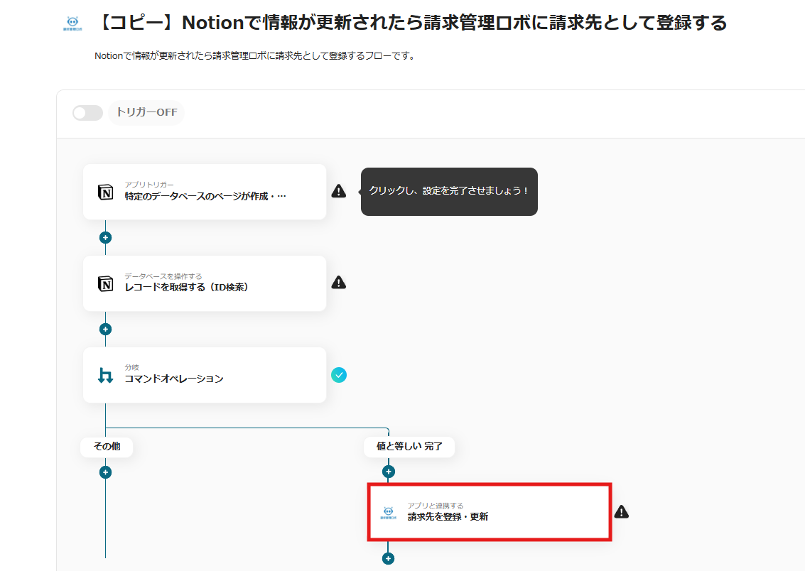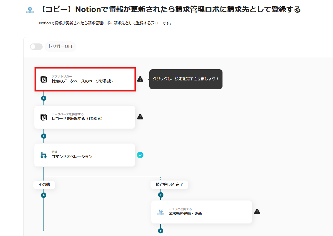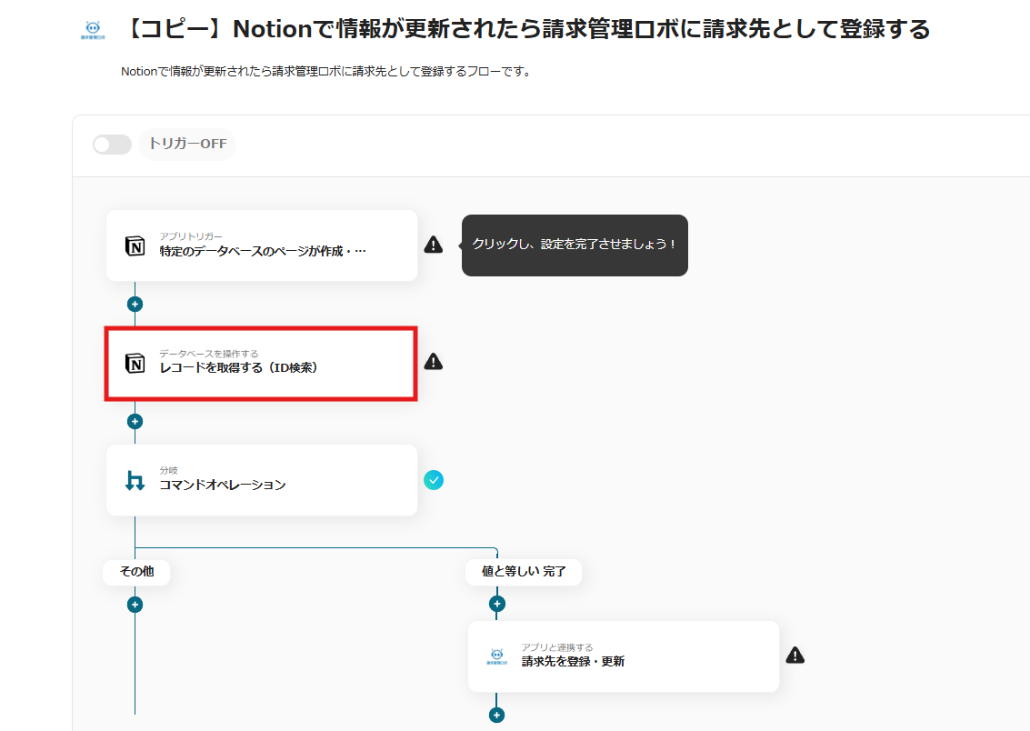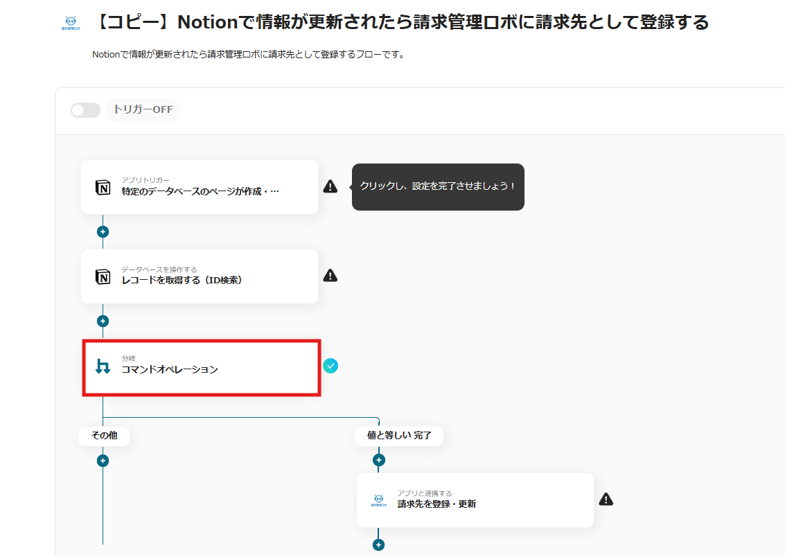 「【コピー】Notionで情報が更新されたら請求管理ロボに請求先として登録する」をクリックします。