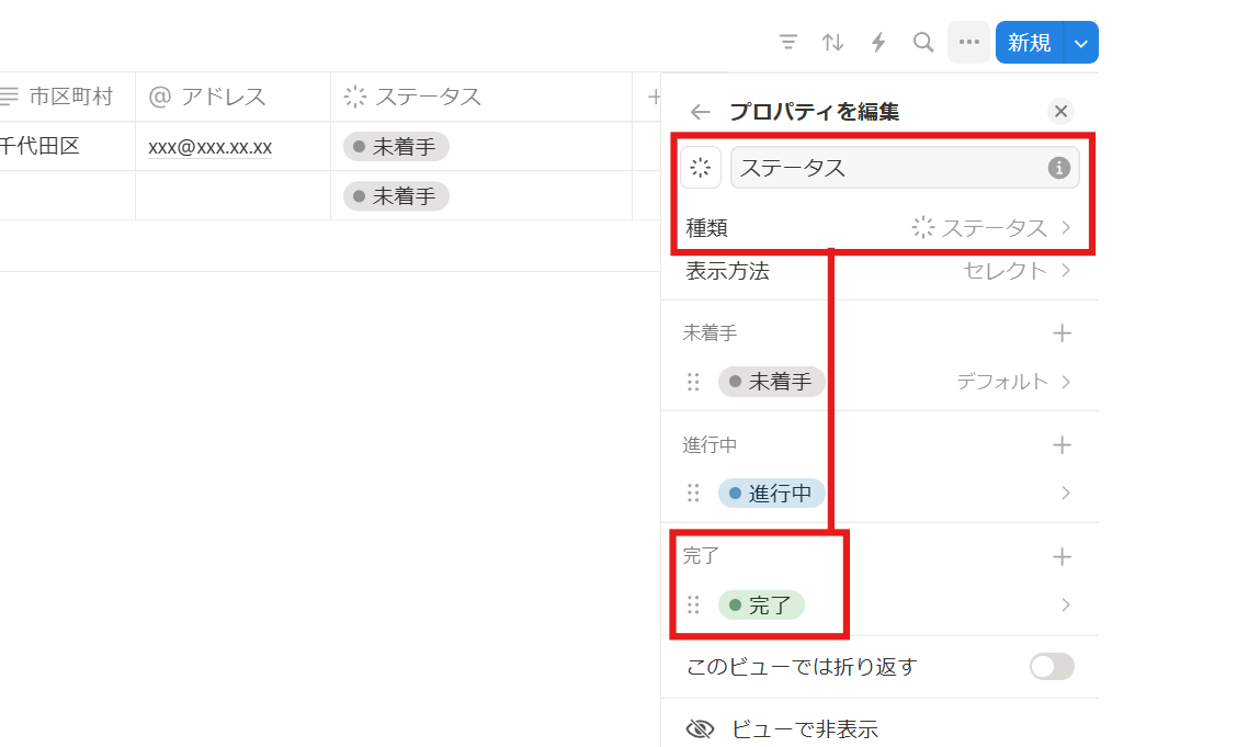 そのため、プロパティの編集から、ステータスは必ず設定しておきましょう。