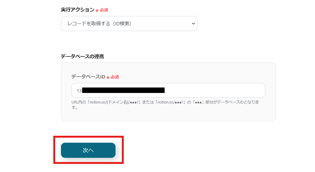 Notionのアイコンの「レコードを取得する(ID検索)」をクリックします。