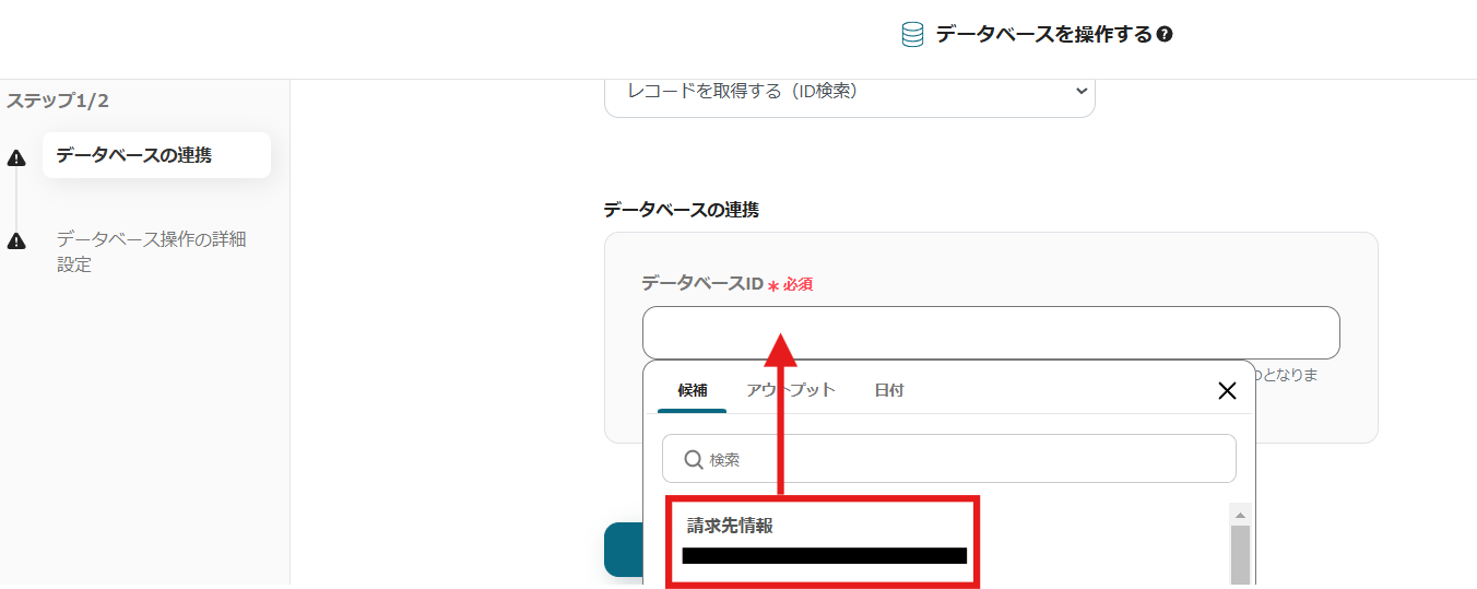 請求管理ロボに登録したいデータを管理しているデータベースのIDを入力しましょう。