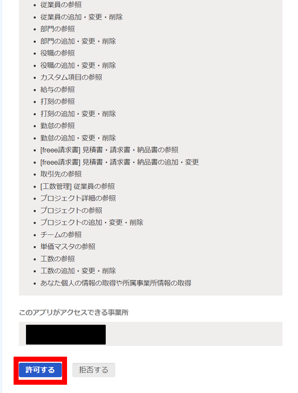 アプリ連携の開始画面が出てくるので、下部にある「許可する」をクリックします。