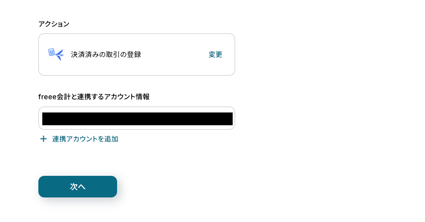 - 最後に、オペレーションでfreee会計の「決済済みの取引の登録」を設定し、Notionから取得した情報をもとに売上取引を登録します