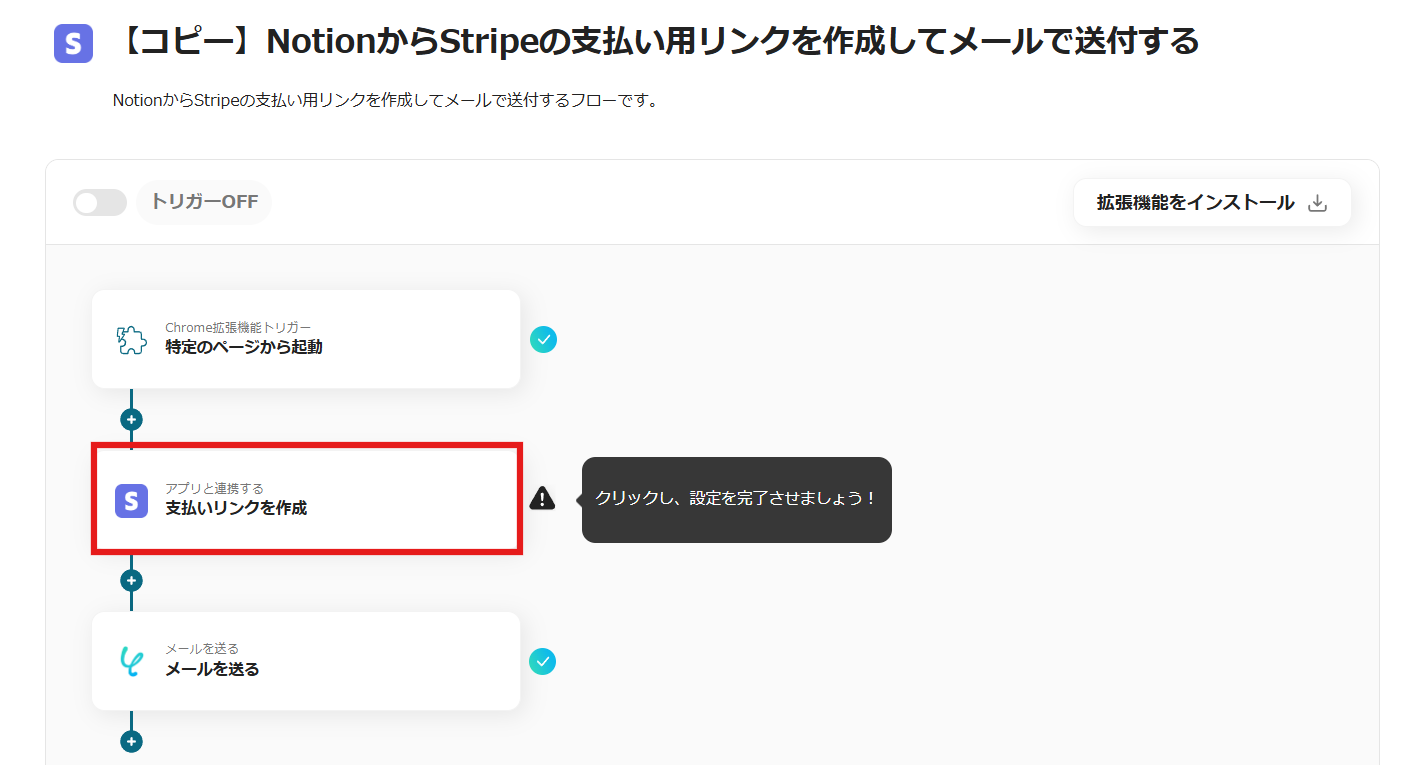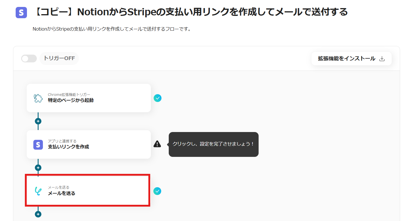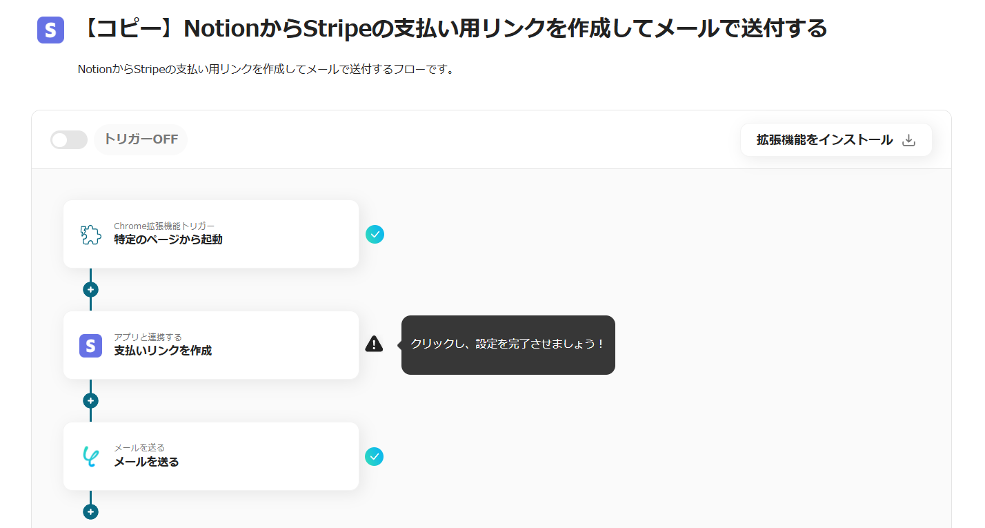 NotionからStripeの支払い用リンクを作成してGmailで送付するフローです。