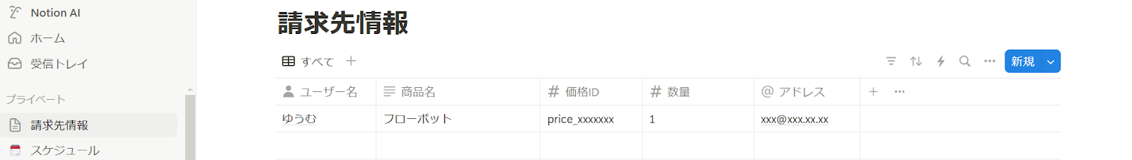 この連携で、Stripeでサブスクリプションの内容が変更された際に自動的にNotionへ追加されるため、情報の一元管理がスムーズに行えます。