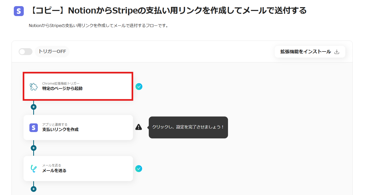 - トリガーボタンをONにして、NotionとStripeの連携動作を確認