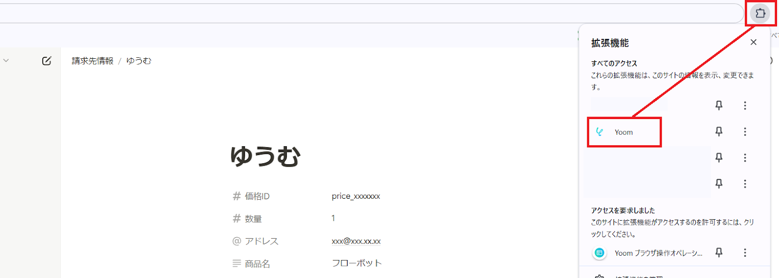 その後Notionにアクセスし、右上のChrome拡張機能のボタンからYoomを選択してください。