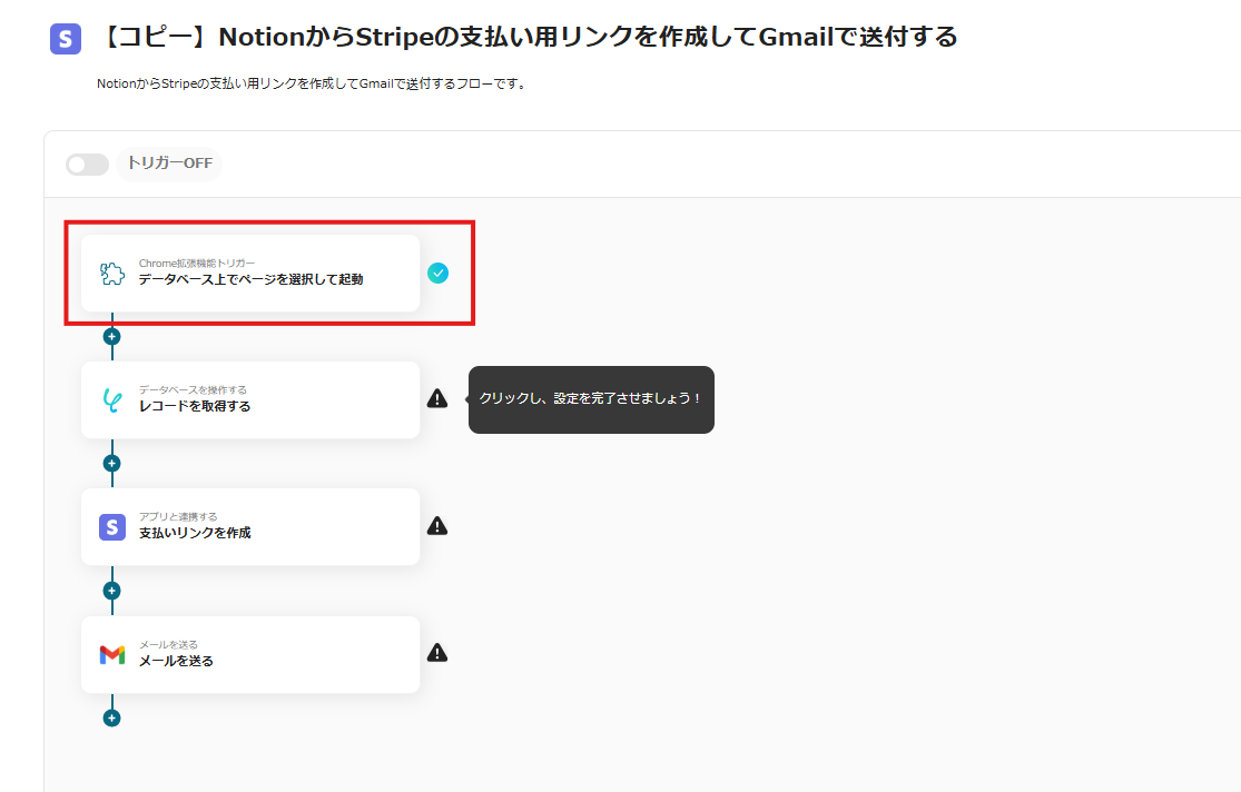 ・Notionのchrome拡張機能トリガーの設定とStripeの設定