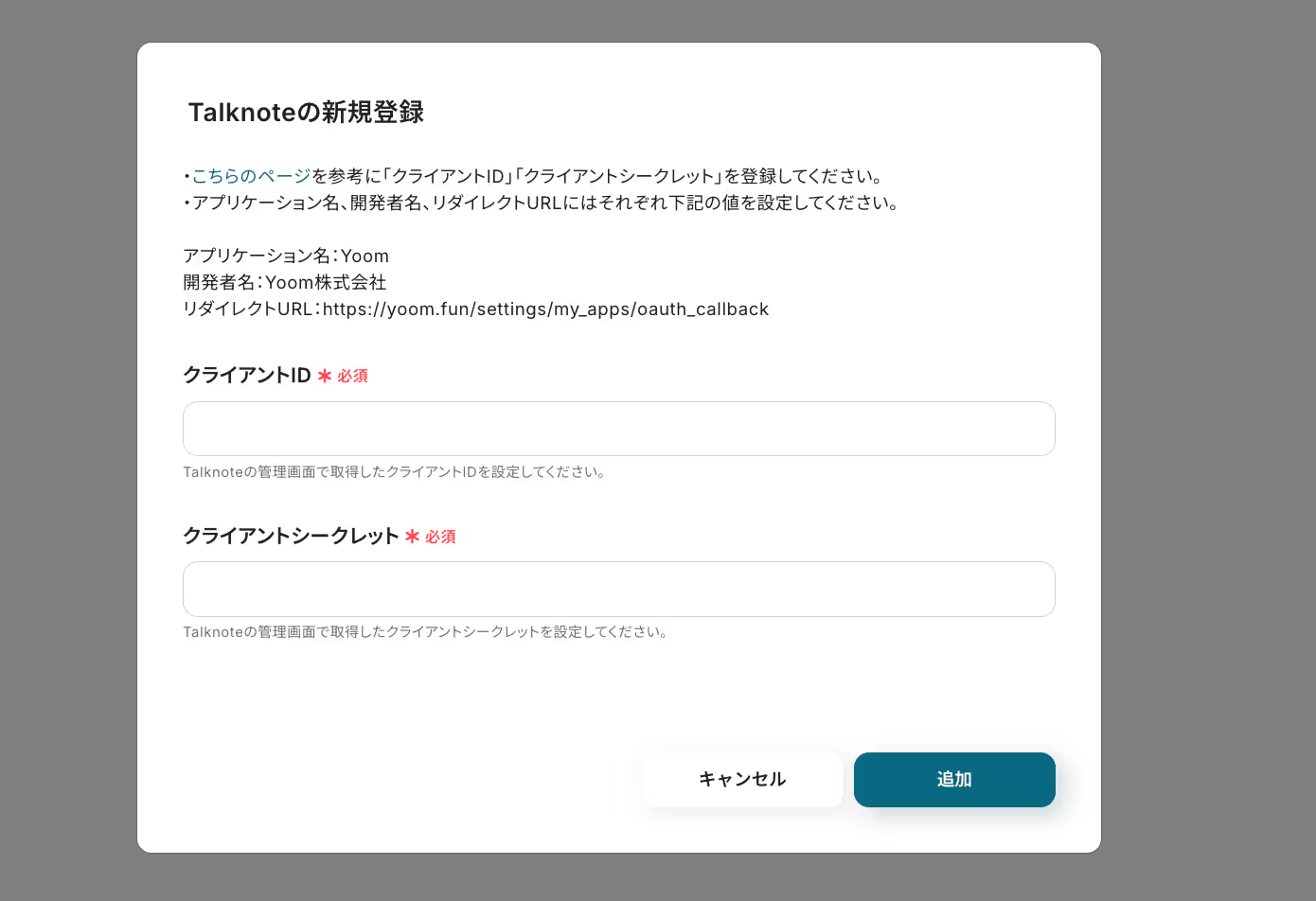 ・Zendesk、TalknoteそれぞれとYoomを連携してください。