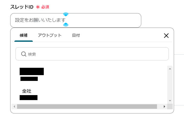 ボックス内をクリックするとTalknoteのスレッドが一覧表示されるようになっているので、Notionと連携したいスレッドIDをクリックするだけでOKです。