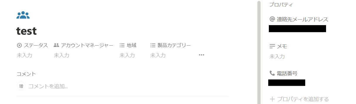 Notionの画面に移動し、任意のデータソースに名前とメールアドレスを含むレコードを作成します。