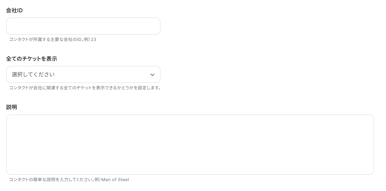 チケットの作成や返信、会社情報の作成や削除などの連携もできます。