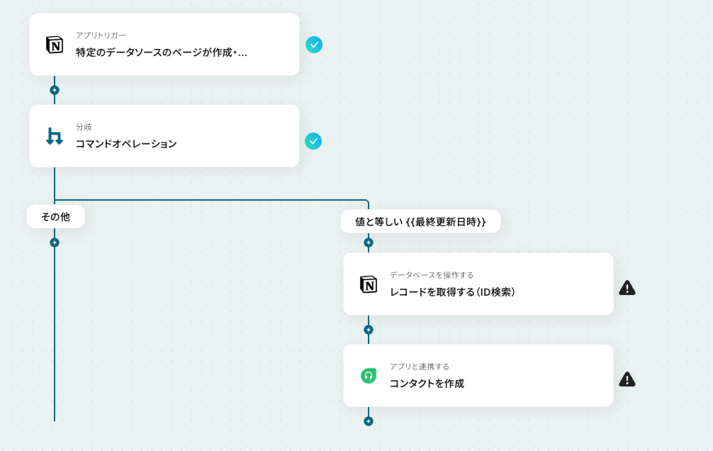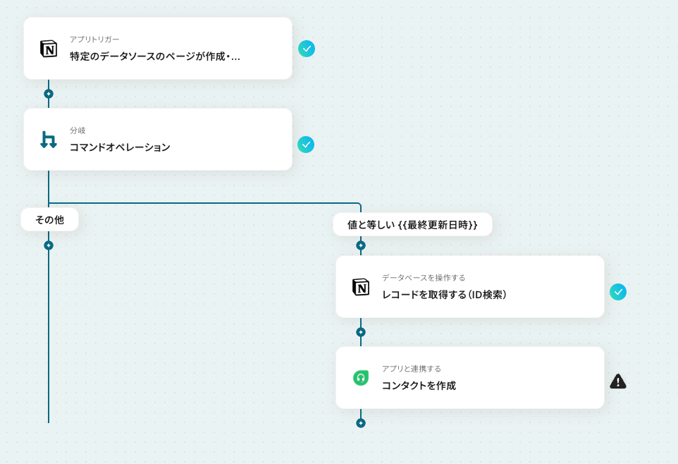 例えば「特定のタグが付いた」や「ステータスが更新された」といった条件でNotionのデータベースアイテムを抽出し、該当するものだけをFreshdeskにコンタクトとして自動で追加できるため、不要な情報連携を防ぎ、本当に必要なデータだけを効率的に同期できます。