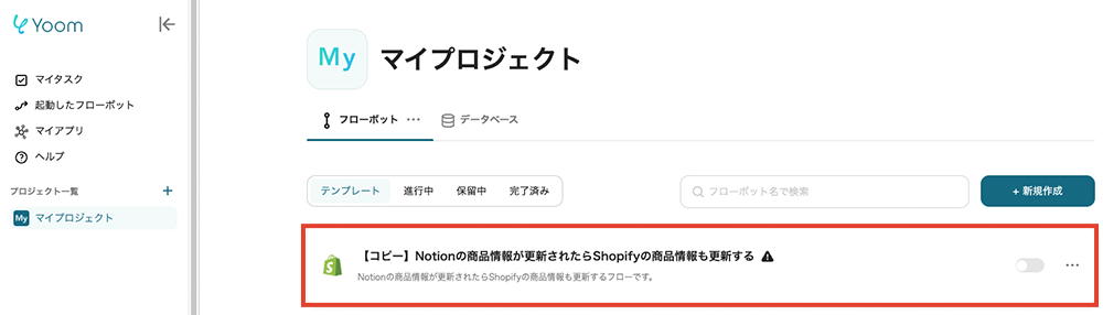 ここから「Notionの商品情報が更新されたらShopifyの商品情報も更新する」自動化をYoomのフローボットテンプレートでの作り方を解説します。