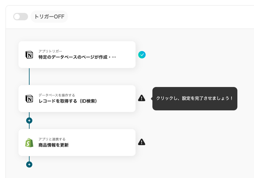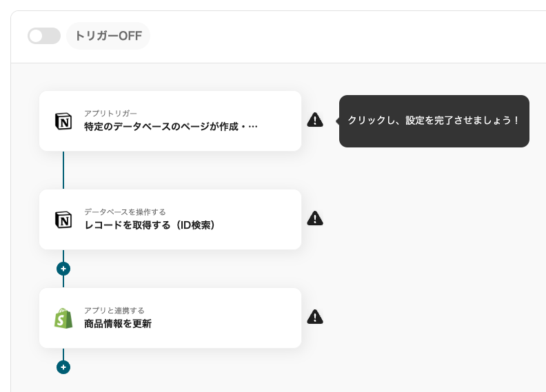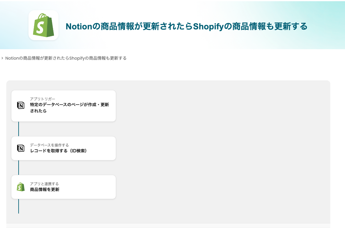 - 「Notionの商品情報をShopifyに登録する」フローボットテンプレートからお試しいただくと、連携がスムーズです。