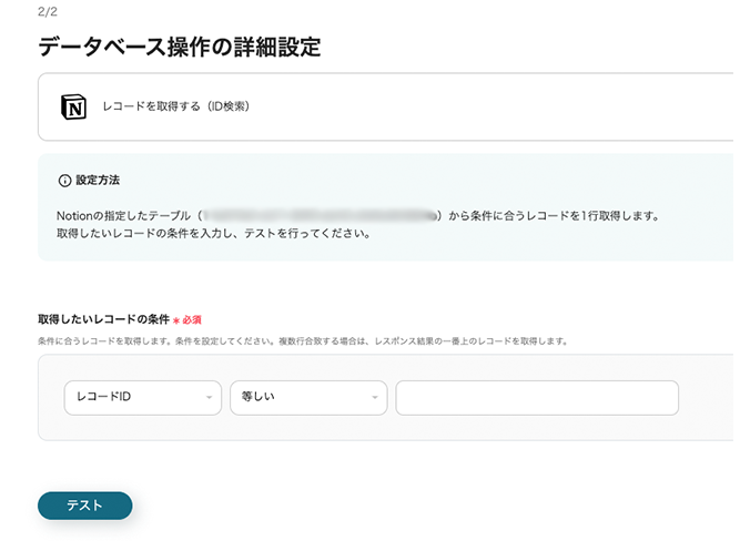 同じページの下にある欄には、1つ目のプロセスで入力したデータベースIDを入力します。
