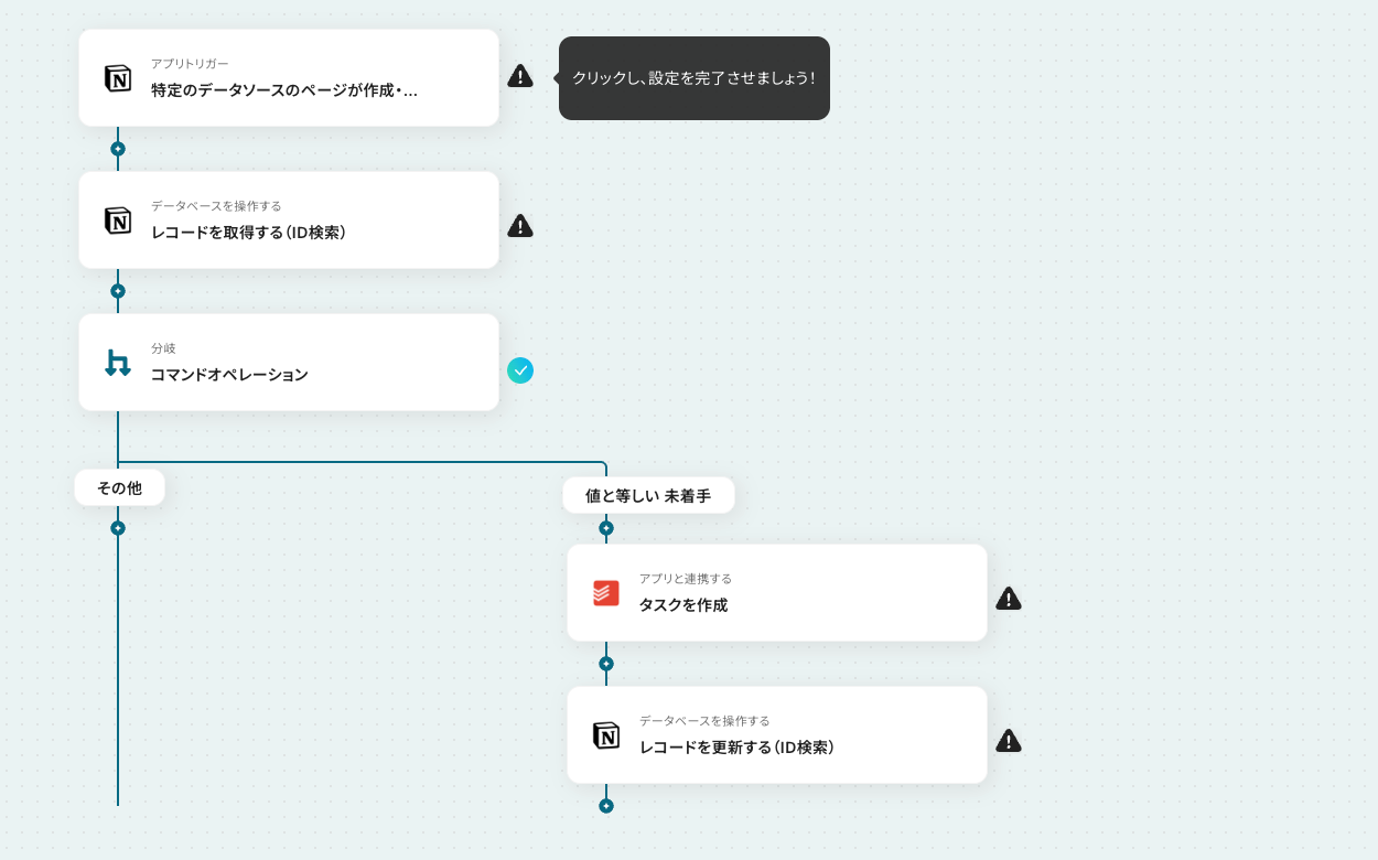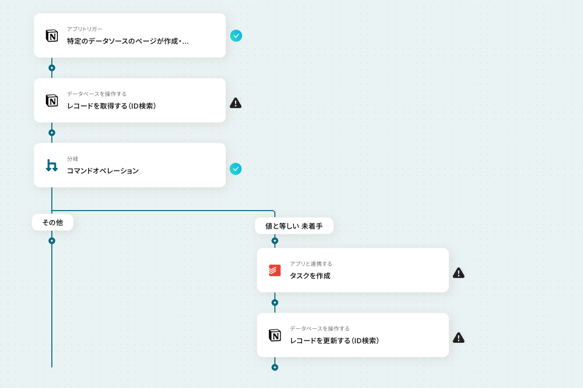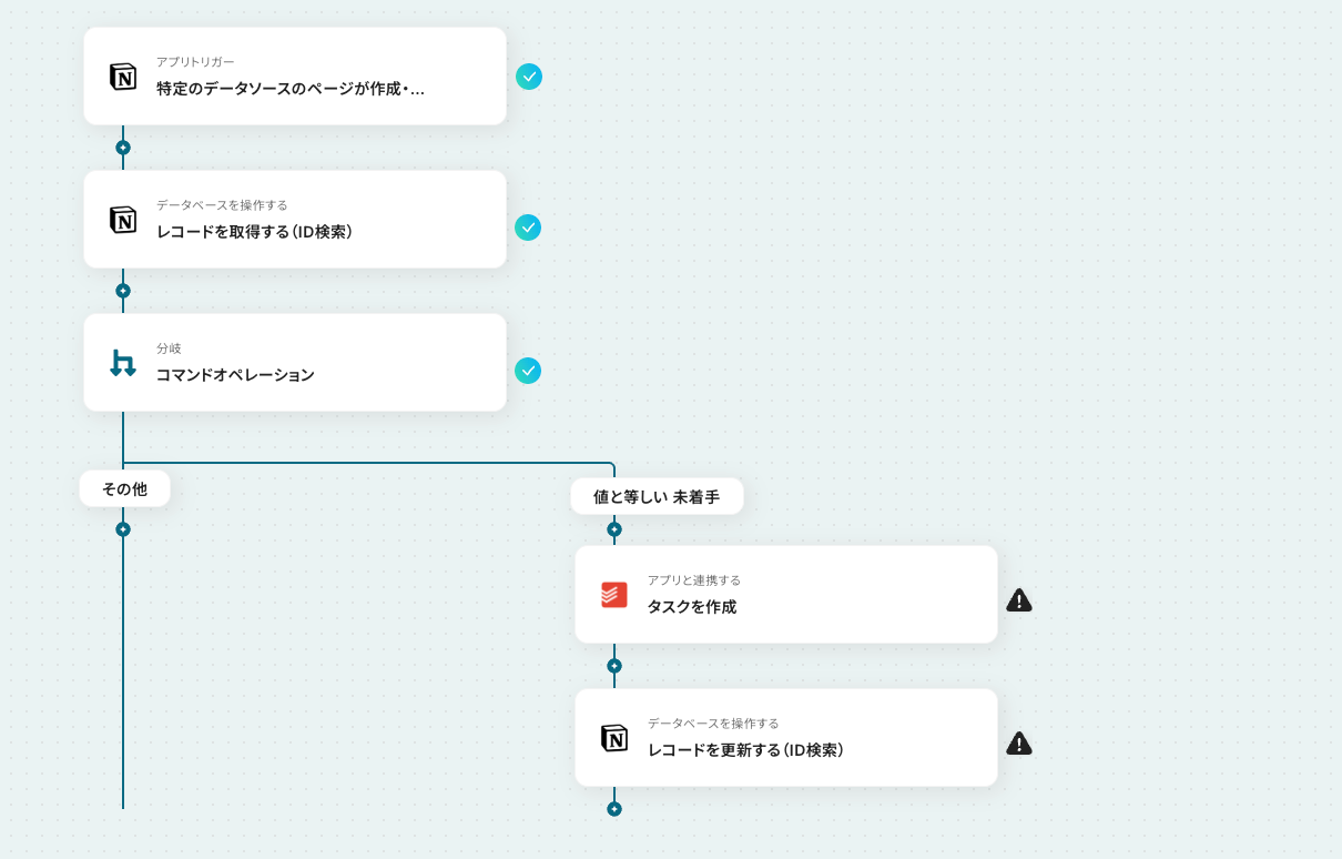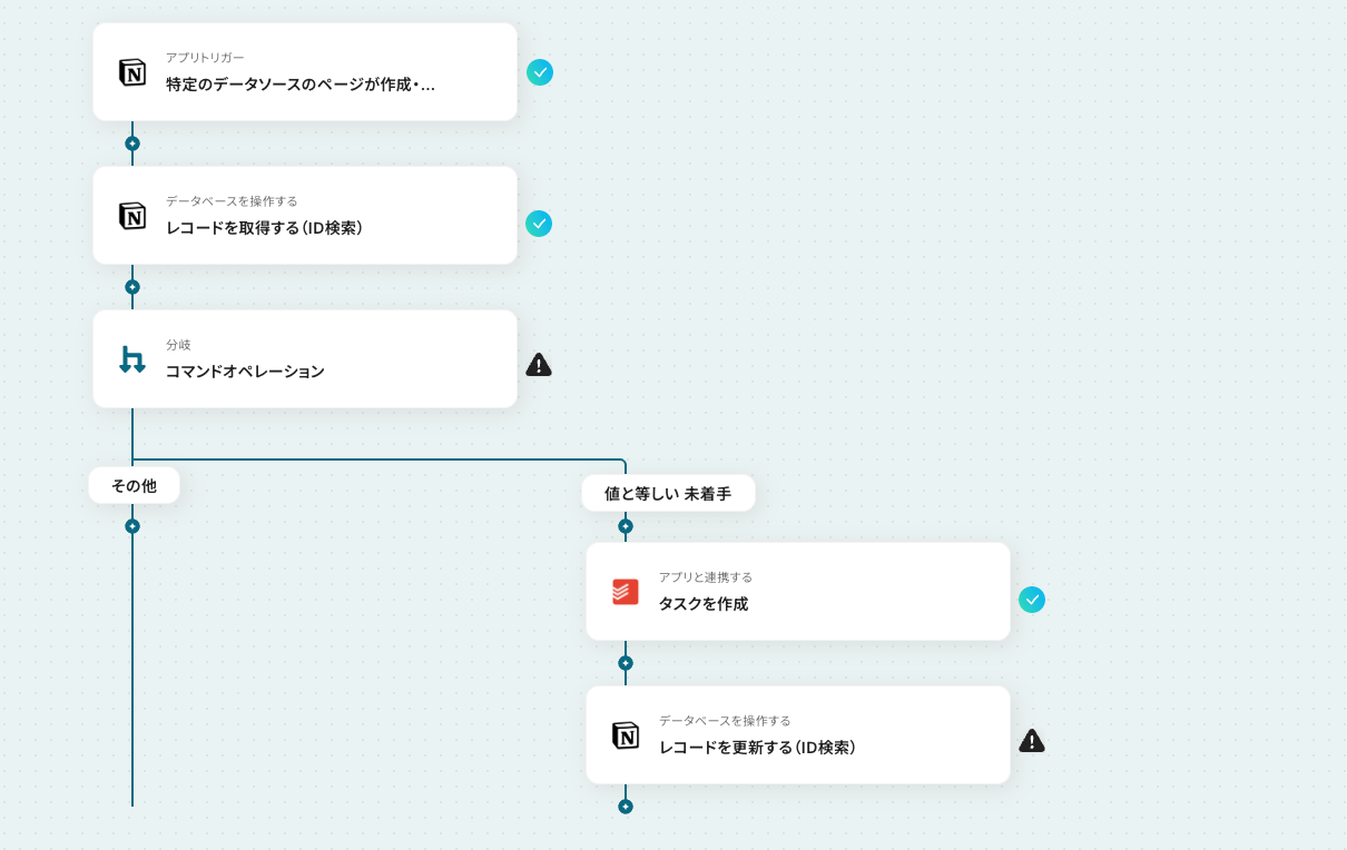 このワークフローを活用すれば、Notionのデータベースでタスクのステータスが更新されると、自動でTodoistの関連タスクも更新されるため、これらの課題を解消し、常に最新の状態でタスクを管理できます。