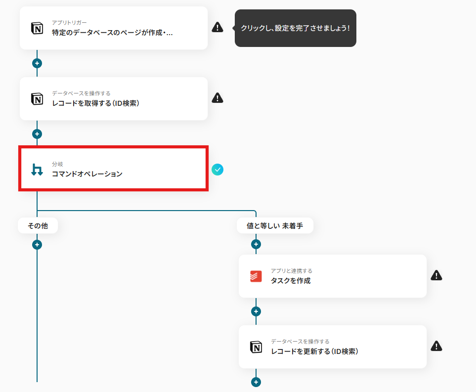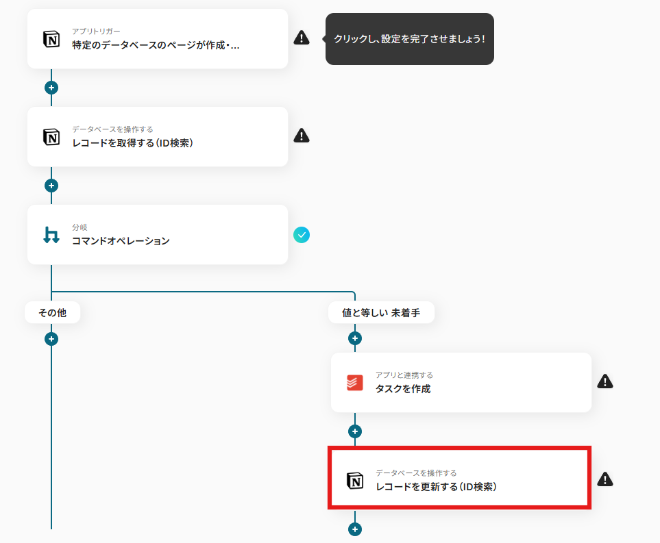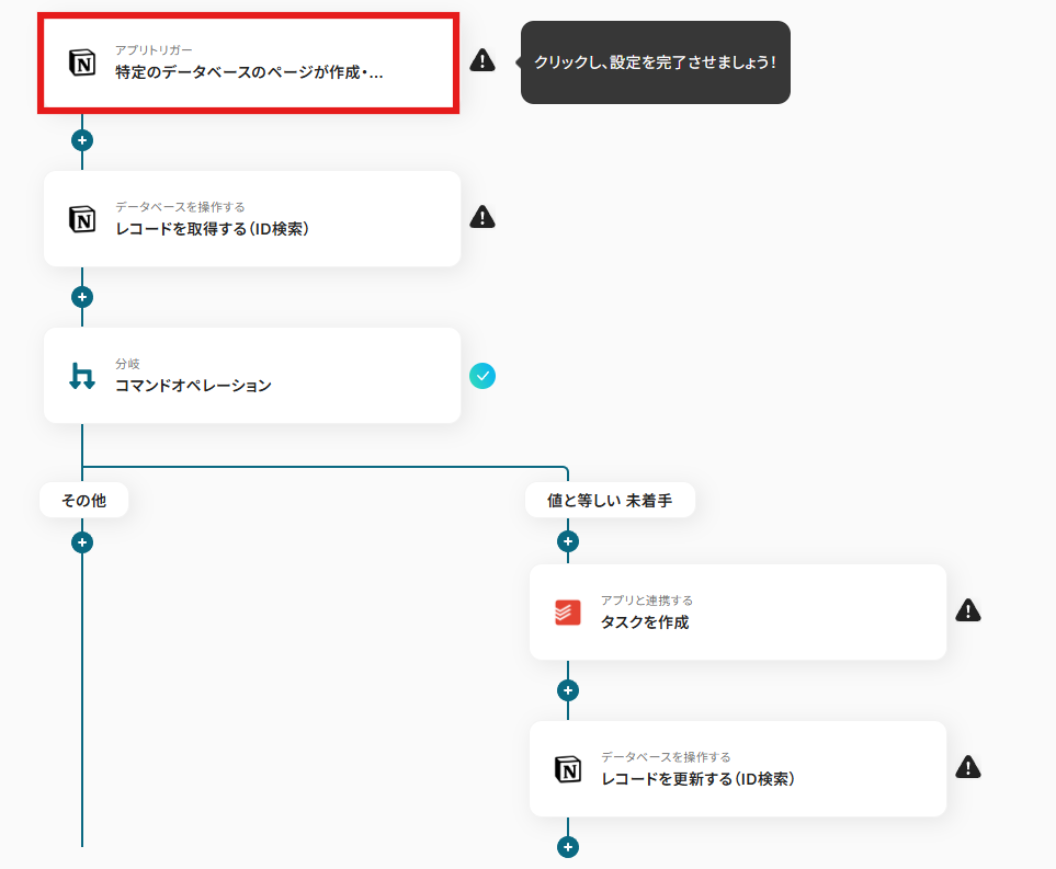 - Notionのトリガー設定とTodoistのオペレーション設定