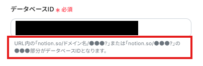 「データベースID」は、入力欄をクリックして表示される候補から選択してください。