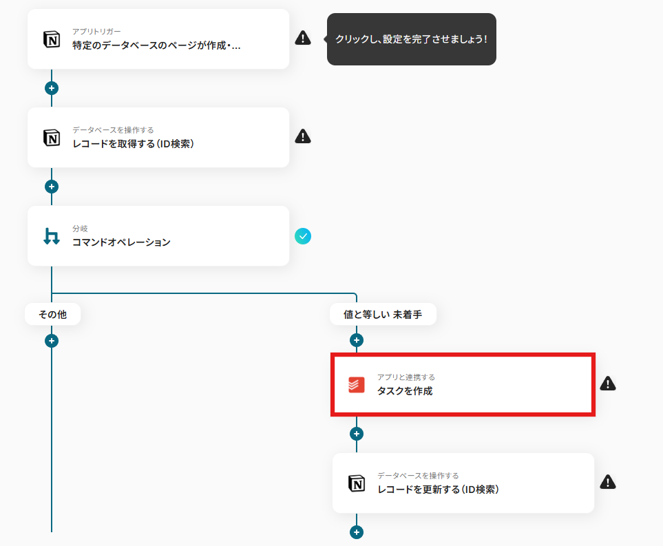 ※こちらのフローは、分岐条件不一致の場合、Todoistにタスクは作成されません。