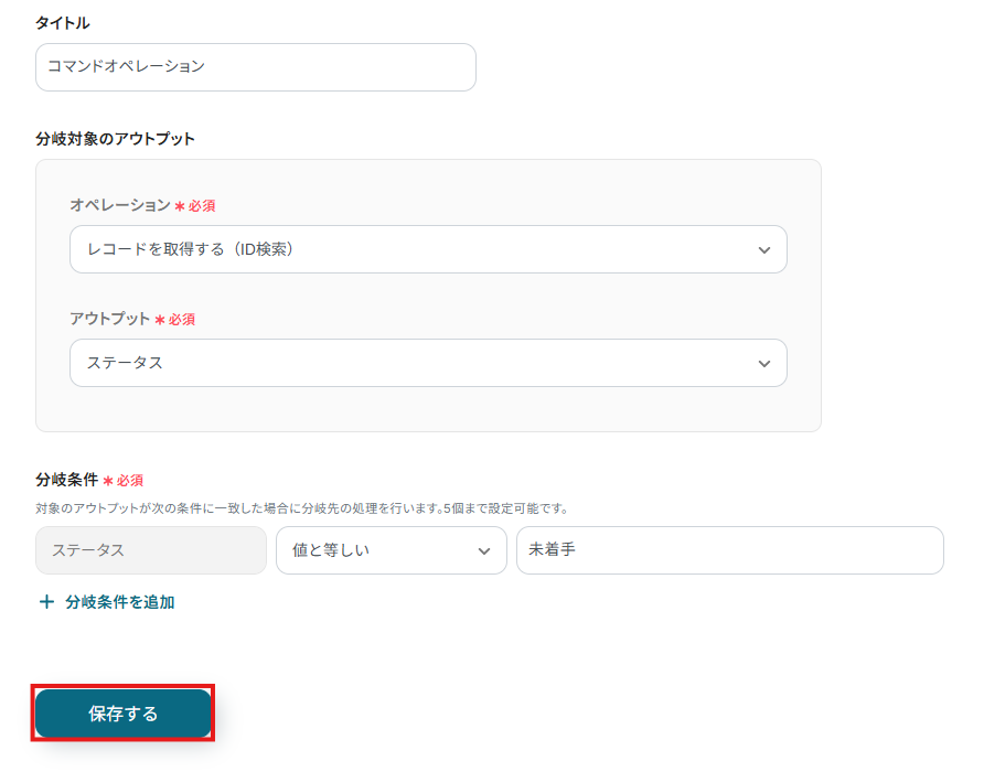 「分岐条件」は、分岐先の処理を行う条件を設定します。