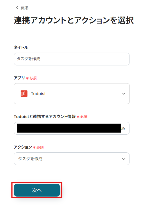 設定が成功すると、Todoistに以下画像のようにタスクが作成されます。