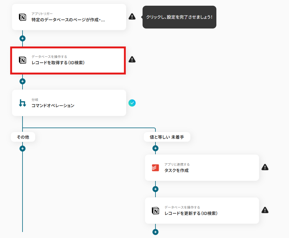 1.データベースを操作する「レコードを取得する(ID検索)」をクリックしてください。