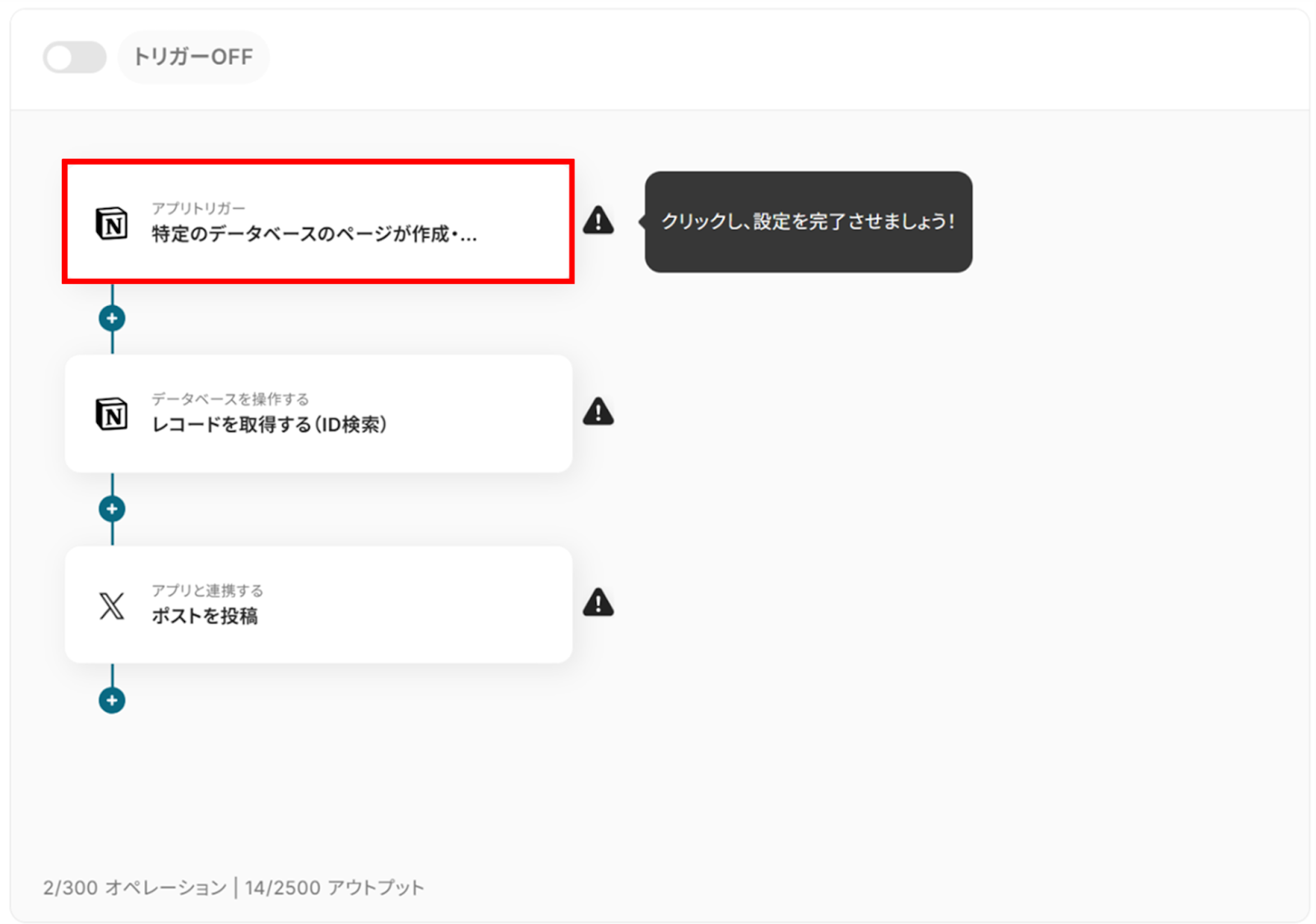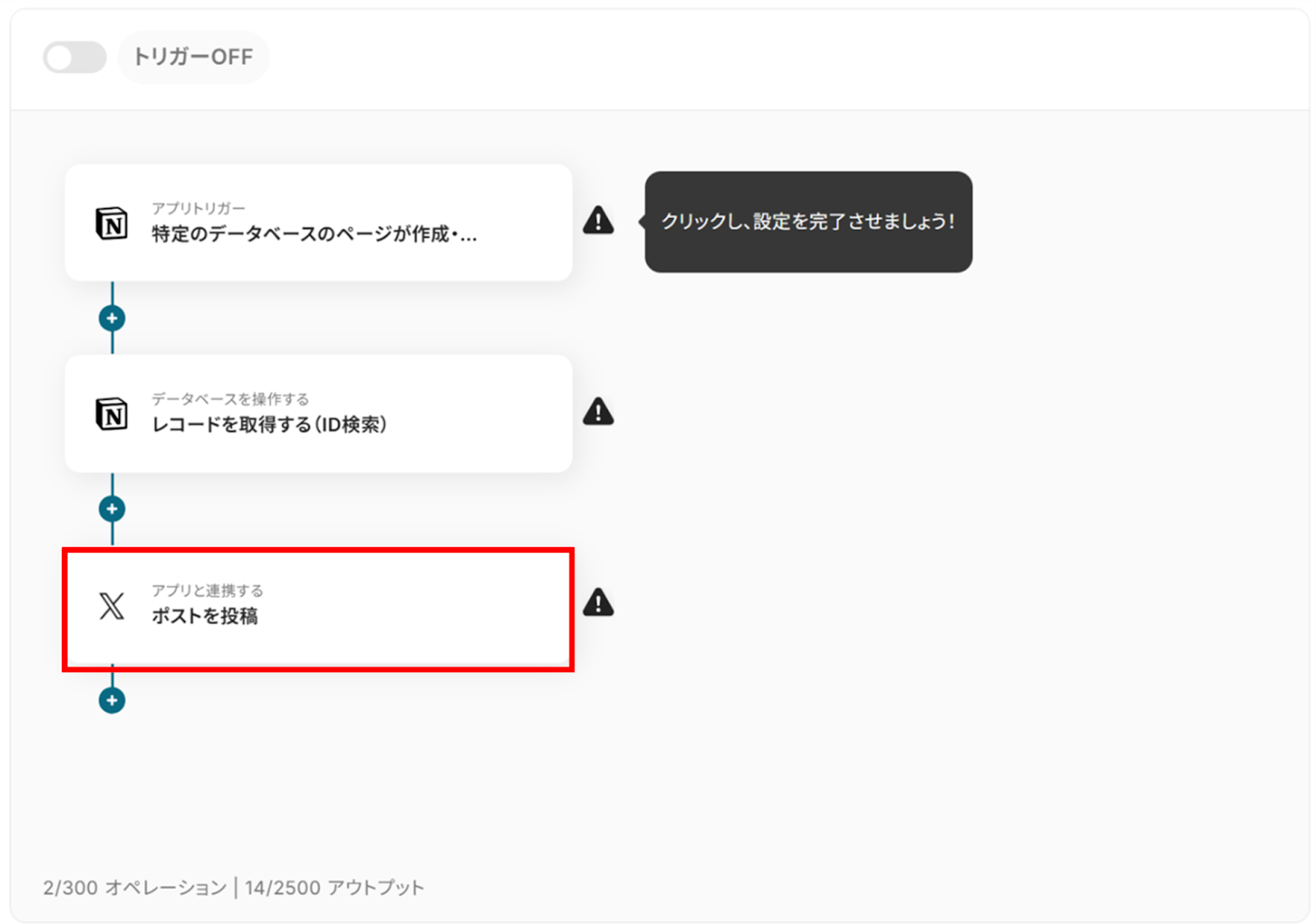 たとえば、Notionへのデータ追加やステータス更新をトリガーにX(Twitter)に自動投稿可能です。